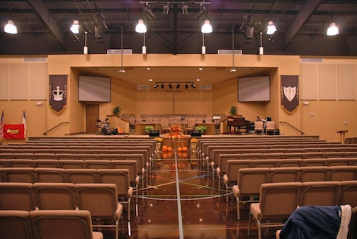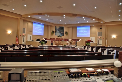 At Central Baptist Church we installed sound reinforcement, video projection and stage lighting and control